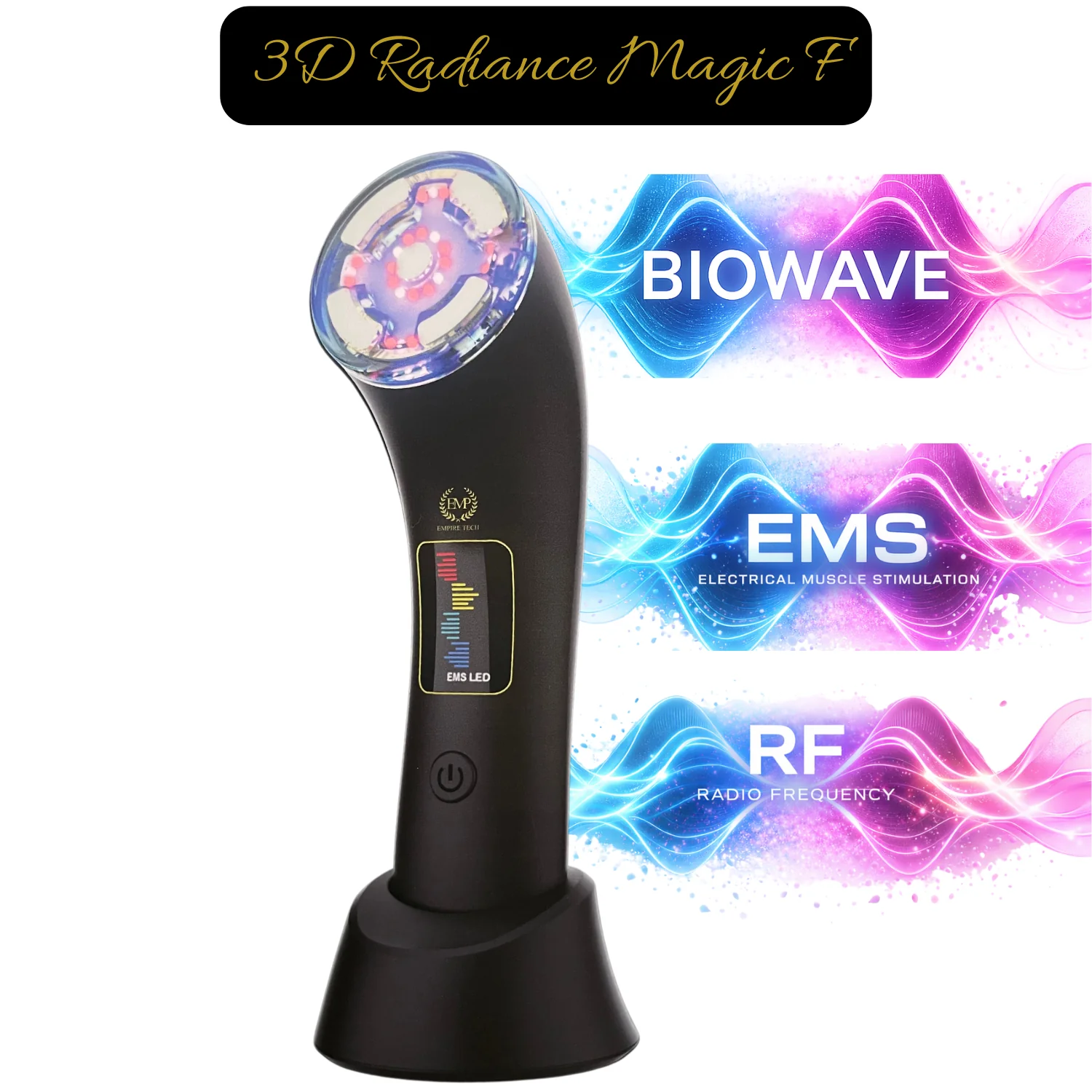 מכשיר ה-3D Radiance Magic F משלב ארבע טכנולוגיות מתקדמות במכשיר אחד אלגנטי וברמת מקצועיות גבוהה, שנועד למיצוק העור, החלקתו והחייאתו בצורה נראית לעין – בבטיחות ובנוחות, מהבית.