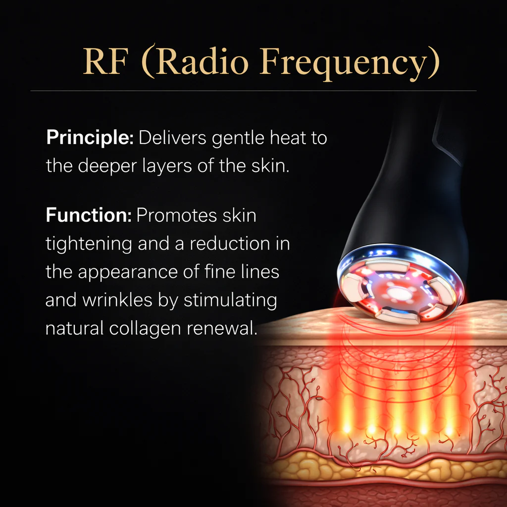 מכשיר טיפוח עור מתקדם בטכנולוגיות RF • EMS • תאורת LED אדומה • תאורת LED כחולה